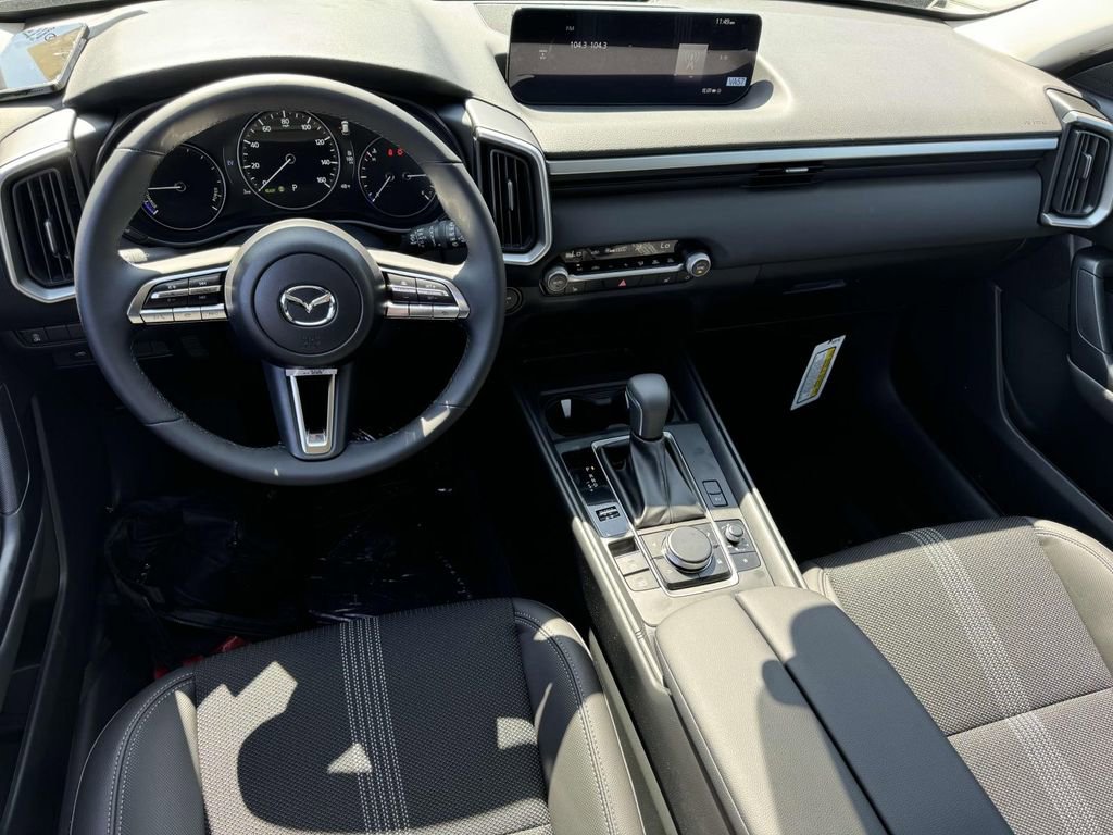 Weather Package (Cargo Liner w/Seatback Protection), 2.5L 4-Cylinder, 4-Wheel Disc Brakes, 8 Speakers, ABS brakes, Air Conditioning, Alloy wheels, AM/FM radio, AppLink/Apple CarPlay and Android Auto, Auto High-beam Headlights, Automatic temperature control, Black Lug Nuts & Black Wheel Locks, Brake assist, Bumpers: body-color, Delay-off headlights, Driver door bin, Driver vanity mirror, Dual front impact airbags, Dual front side impact airbags, Electronic Stability Control, Emergency communication system: MAZDA CONNECT, Exterior Parking Camera Rear, Front anti-roll bar, Front Bucket Seats, Front Center Armrest, Front dual zone A/C, Front reading lights, Front wheel independent suspension, Fully automatic headlights, Half Leatherette Seat Trim, Heated door mirrors, Heated Front Seats, Heated Front Seats w/3 Level Adjustment, Illuminated entry, Knee airbag, Leather Shift Knob, Leather steering wheel, Low tire pressure warning, Machine Gray Metallic Paint Charge, Occupant sensing airbag, Outside temperature display, Overhead airbag, Overhead console, Panic alarm, Passenger door bin, Passenger vanity mirror, Power door mirrors, Power driver seat, Power Liftgate, Power steering, Power windows, Radio data system, Radio: AM/FM/HD 8-Speaker Audio Sound System, Rain sensing wipers, Rear seat center armrest, Rear window defroster, Rear window wiper, Remote keyless entry, Speed control, Speed-sensing steering, Split folding rear seat, Spoiler, Steering wheel mounted audio controls, Tachometer, Telescoping steering wheel, Tilt steering wheel, Traction control, Trip computer, Turn signal indicator mirrors, Variably intermittent wipers, and Wheels: 17 x 7J Black Metallic Finish Alloy. 2.5L 4-Cylinder 39/37 City/Highway MPG eCVT 2.5L 4-Cylinder.
