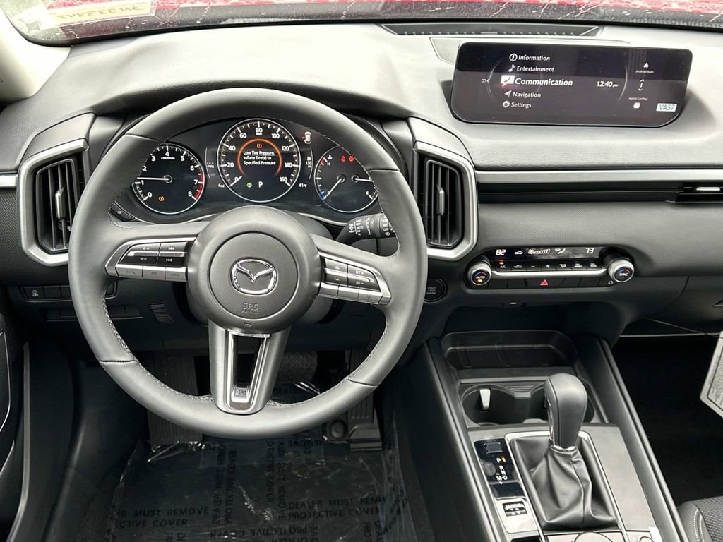 Weather Package, 4-Wheel Disc Brakes, 8 Speakers, ABS brakes, Air Conditioning, Alloy wheels, AM/FM radio, AppLink/Apple CarPlay and Android Auto, Auto High-beam Headlights, Automatic temperature control, Brake assist, Bumpers: body-color, Delay-off headlights, Driver door bin, Driver vanity mirror, Dual front impact airbags, Dual front side impact airbags, Electronic Stability Control, Emergency communication system: MAZDA CONNECT, Exterior Parking Camera Rear, Front anti-roll bar, Front Bucket Seats, Front Center Armrest, Front dual zone A/C, Front reading lights, Front wheel independent suspension, Fully automatic headlights, Half Leatherette Seat Trim, Illuminated entry, Knee airbag, Leather Shift Knob, Leather steering wheel, Low tire pressure warning, Occupant sensing airbag, Outside temperature display, Overhead airbag, Overhead console, Panic alarm, Passenger door bin, Passenger vanity mirror, Power door mirrors, Power steering, Power windows, Radio data system, Radio: AM/FM/HD 8-Speaker Audio Sound System, Rain sensing wipers, Rear seat center armrest, Rear window defroster, Rear window wiper, Remote keyless entry, Soul Red Crystal Metallic Paint Charge, Speed control, Speed-sensing steering, Split folding rear seat, Spoiler, Steering wheel mounted audio controls, Tachometer, Telescoping steering wheel, Tilt steering wheel, Traction control, Trip computer, Turn signal indicator mirrors, Variably intermittent wipers, and Wheels: 17 x 7J Aluminum Alloy Black Metallic Finish. SKYACTIV® 2.5L 4-Cylinder DOHC 16V 25/31 City/Highway MPG 6-Speed Automatic