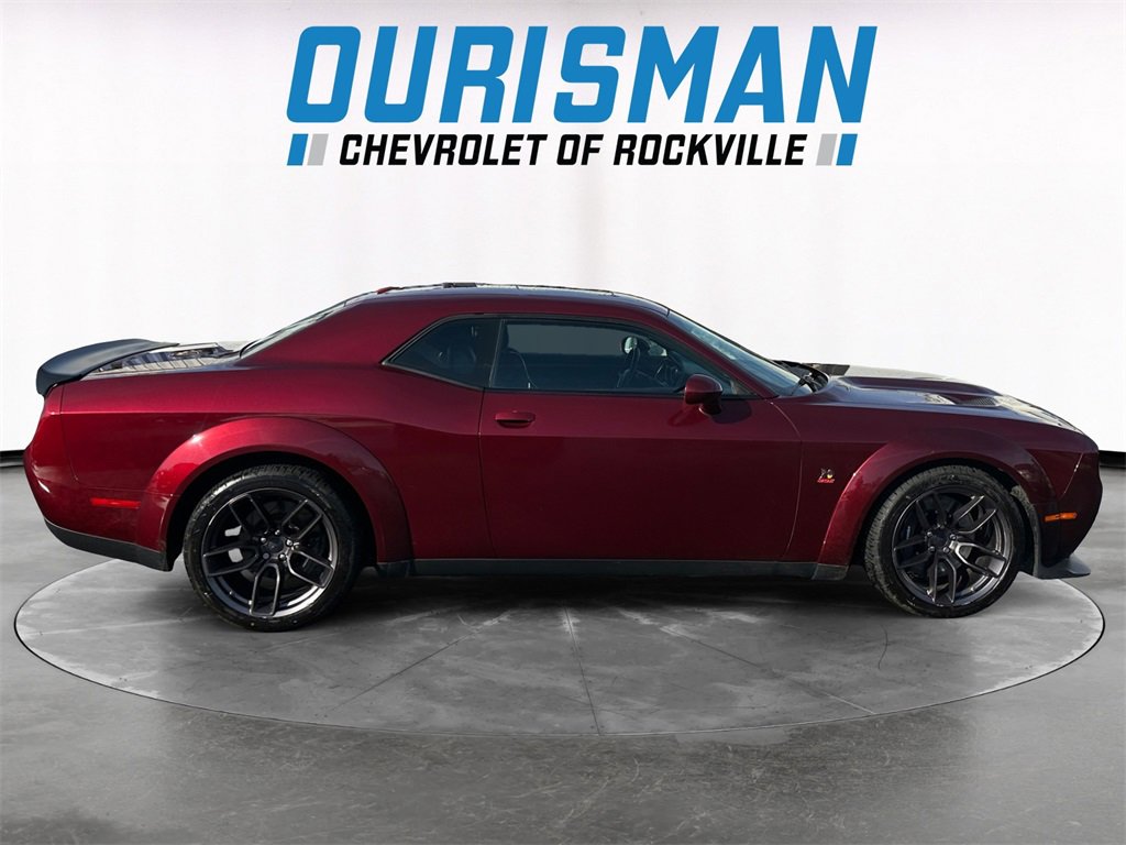 Challenger R/T Scat Pack, SRT HEMI 6.4L V8 MDS, 8-Speed Automatic, Octane Red Pearlcoat, Black w/Scat Pack Logo Houndstooth Seat or Cloth Performance Seat w/Star or Houndstooth Cloth Performance Seats or Nappa/Alcantara Performance Seats or Scat Pack Logo Nappa/Alcantara Seat or T/A Nappa/Alcantara Seat, 1-Yr SiriusXM Guardian Trial, 18 Speakers Premium Audio System, 4G LTE Wi-Fi Hot Spot, 8.4 Touchscreen Display, Adaptive Damping Suspension, Apple CarPlay, Auto High Beam Headlamp Control, Blind Spot & Cross Path Detection, Brembo 6-Pot Fixed Front Caliper Brakes, Door Trim Panel w/Ambient Lighting, Driver Convenience Group, For Details, Visit DriveUconnect.com, Google Android Auto, GPS Antenna Input, GPS Navigation, harman/kardon Audio Group w/Subwoofer, harman/kardon GreenEdge Amp, HD Radio, Heated Steering Wheel, High-Intensity Discharge Headlamps, Integrated Center Stack Radio, Integrated Voice Command w/Bluetooth, Media Hub (2 USB, AUX), Performance Shift Indicator, Plus Package, Power Multi-Function Foldaway Mirrors, Power Sunroof, Quick Order Package 23G R/T Scat Pack, Rain Sensitive Windshield Wipers, SiriusXM Satellite Radio, SiriusXM Traffic Plus, SiriusXM Travel Link, SRT Performance Spoiler, Surround Sound, Technology Group, Trunk Mounted Subwoofer, Uconnect 4C Nav w/8.4 Display, USB Host Flip, Wheels: 20 x 11.0 Devil's Rim Aluminum, Widebody Competition Suspension, Widebody Fender Flares, Widebody Package (DISC). SRT HEMI 6.4L V8 MDS 8-Speed Automatic